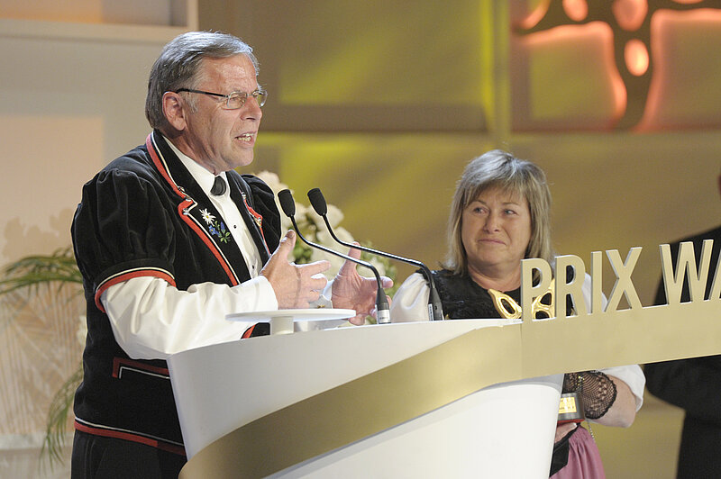 Ein Sonnen-Sonntag im MythenForum Schwyz und Heimspiel für die Schwyzerin Monika Kaelin. Sie hatte diese Galaveranstaltung massgeblich mit auf die Beine gestellt und dafür gesorgt, dass die PRIX WALO-Verleihung im Kantonshauptort mit einem Knall begann. Und das ist wörtlich zu nehmen. Eine Handvoll Peitschenknaller liessen ihr Gerät über den Köpfen der über 700 Gäste zischen und knallen. Da zog so manchen sein edles Haupt ein. Und danach kam’s noch lauter. Rund 30 Mannsbilder liessen schwere Glocken bimmeln: Die Schwyzer Greifler eroberten friedlich Schritt für Schritt die Bühne. Das sei eine einmalige Sache, hier vor dem Publikum und Kameras aufzutreten, meinte einer der jungen Vertreter dieser traditionellen Zunft. Die fixen Kameraleute von Star TV waren hautnah dran, ihnen entging kein falscher Schritt, keine Lachen, keine Träne. Und so konnte man vor Ort und daheim vor dem Bildschirm, dank Paul Graus Star TV, erleben wie Beny Rehmann mit dem EHREN-PRIX WALO und Patricia Boser mit dem Publikumspreis geehrt wurden.